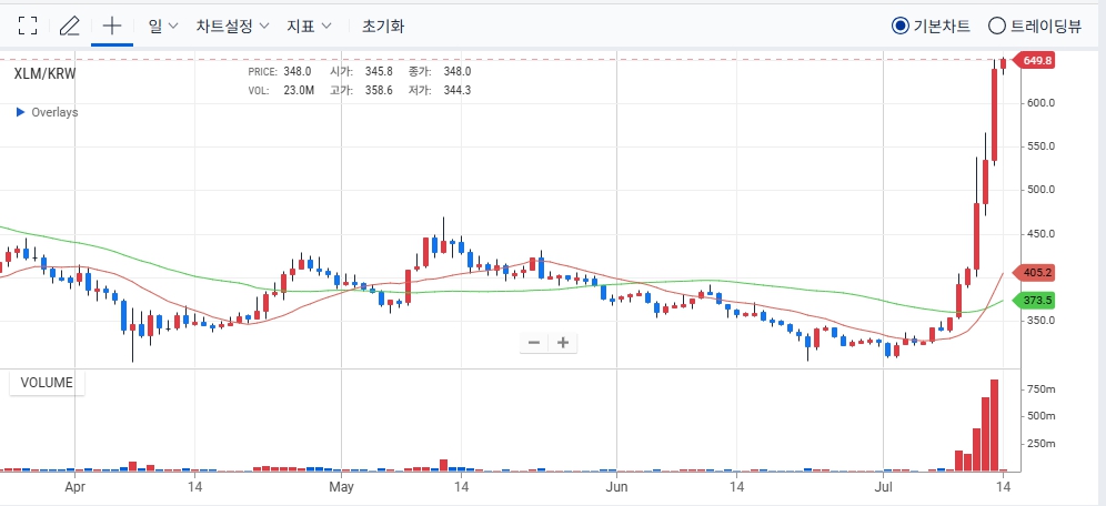 2025년 7월 기준, 스텔라루멘은 오랜 기간 횡보 후 강한 상승 랠리를 보였습니다. 아래는 주요 기술적 특징입니다.